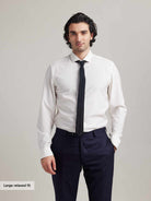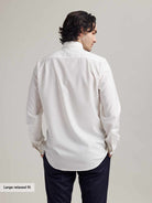 La chemise Tristan se caractérise par un col italien discret et l'absence de patte de boutonnage derrière les boutons.