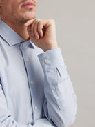Sans gorge de boutonnage apparente et dotée d'un col cutaway subtil, cette chemise habillée en mérinos incarne le minimalisme raffiné. Elle ne se froisse pas et reste fraîche plusieurs jours, même en cas d'utilisation intense.