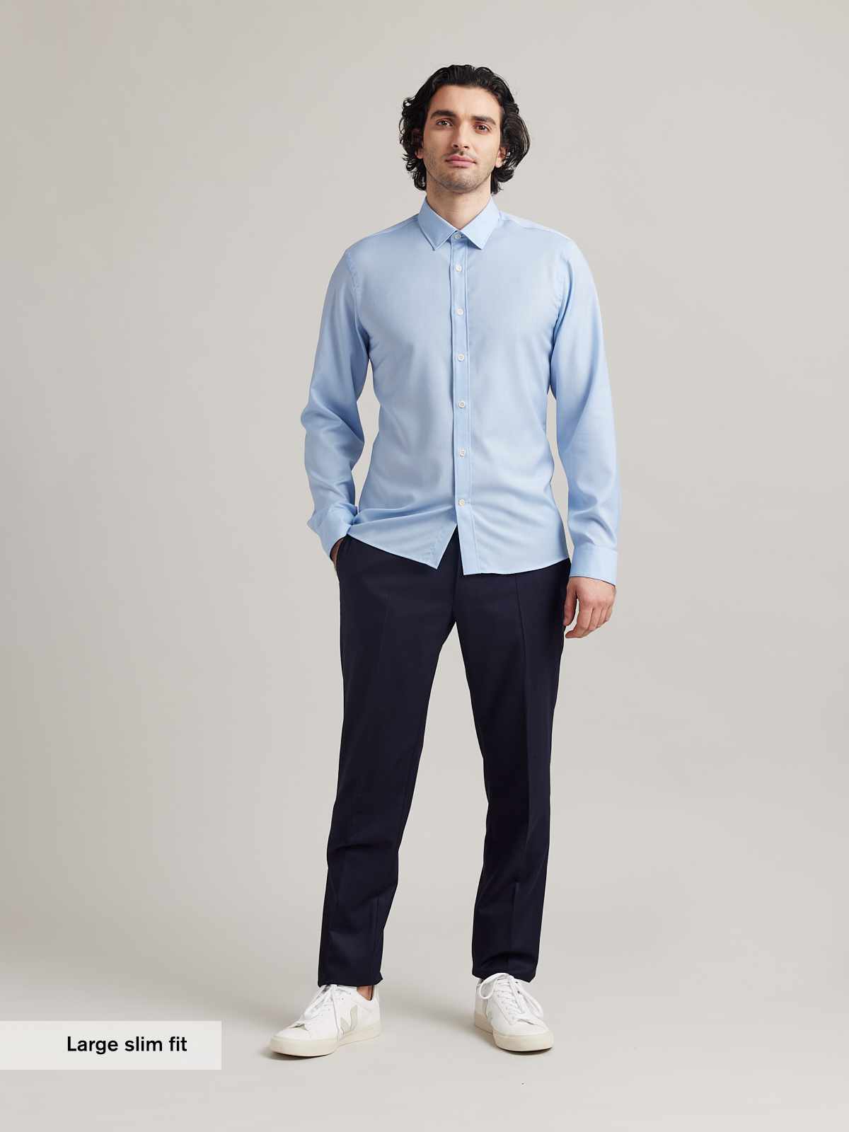 Our shirts come in three distinct fits: Slim, Regular, and Relaxed.